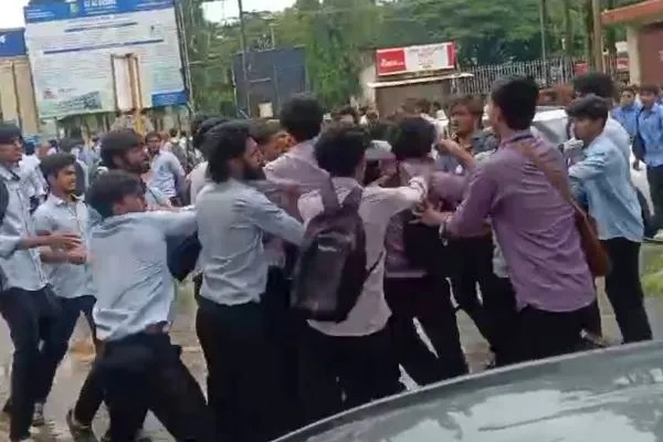 ಮಂಗಳೂರು: ವಿದ್ಯಾರ್ಥಿಗಳ ಗುಂಪೊಂದು ನಡುರಸ್ತೆಯಲ್ಲಿಯೇ ಪರಸ್ಪರ ಹೊಡೆದಾಡಿಕೊಂಡ ಘಟನೆ ಮಂಗಳೂರಿನ ಪ್ರತಿಷ್ಠಿತ ಅಲೋಶಿಯಸ್ ಕಾಲೇಜು ಬಳಿ ನಡೆದಿದೆ. ಕಾಲೇಜು ಗೇಟ್ ಮುಂಭಾಗದ ರಸ್ತೆಯಲ್ಲಿ ಎರಡು ಪ್ರತ್ಯೇಕ ಬಣ್ಣದ ಯುನಿಫಾರಂ ಧರಿಸಿರುವ ವಿದ್ಯಾರ್ಥಿಗಳ ಗುಂಪಿನ ನಡುವೆ ಹೊಡೆದಾಟ ನಡೆದಿದೆ. ಕಾಲೇಜು ಬಿಟ್ಟ ಬಳಿಕ ಕ್ಷುಲ್ಲಕ ಕಾರಣಕ್ಕಾಗಿ ವಿದ್ಯಾರ್ಥಿಗಳ ಗುಂಪಿನ ನಡುವೆ ಹೊಡೆದಾಟ ನಡೆದಿದೆ ಎನ್ನಲಾಗಿದೆ. ಆದರೆ ವಿದ್ಯಾರ್ಥಿಗಳ ನಡುವೆ ಹಿಗ್ಗಾಮುಗ್ಗಾವಾಗಿ ಹಲ್ಲೆ ನಡೆಸುತ್ತಿರುವುದು ವೀಡಿಯೋದಲ್ಲಿ ದಾಖಲಾಗಿದೆ. ಸದ್ಯ ಹೊಡೆದಾಟದ ವಿಡಿಯೋ ಸಾಮಾಜಿಕ ತಾಣಗಳಲ್ಲಿ ವೈರಲ್ ಆಗುತ್ತಿದೆ.