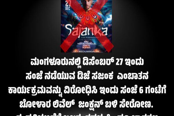 ಮಂಗಳೂರು: ಹಿಂದೂ ಸಂಘಟನೆಗಳ ಆಕ್ರೋಶಕ್ಕೆ ಡಿಜೆ ಸಜಂಕಾ ಕಾರ್ಯಕ್ರಮ ರದ್ದು!!