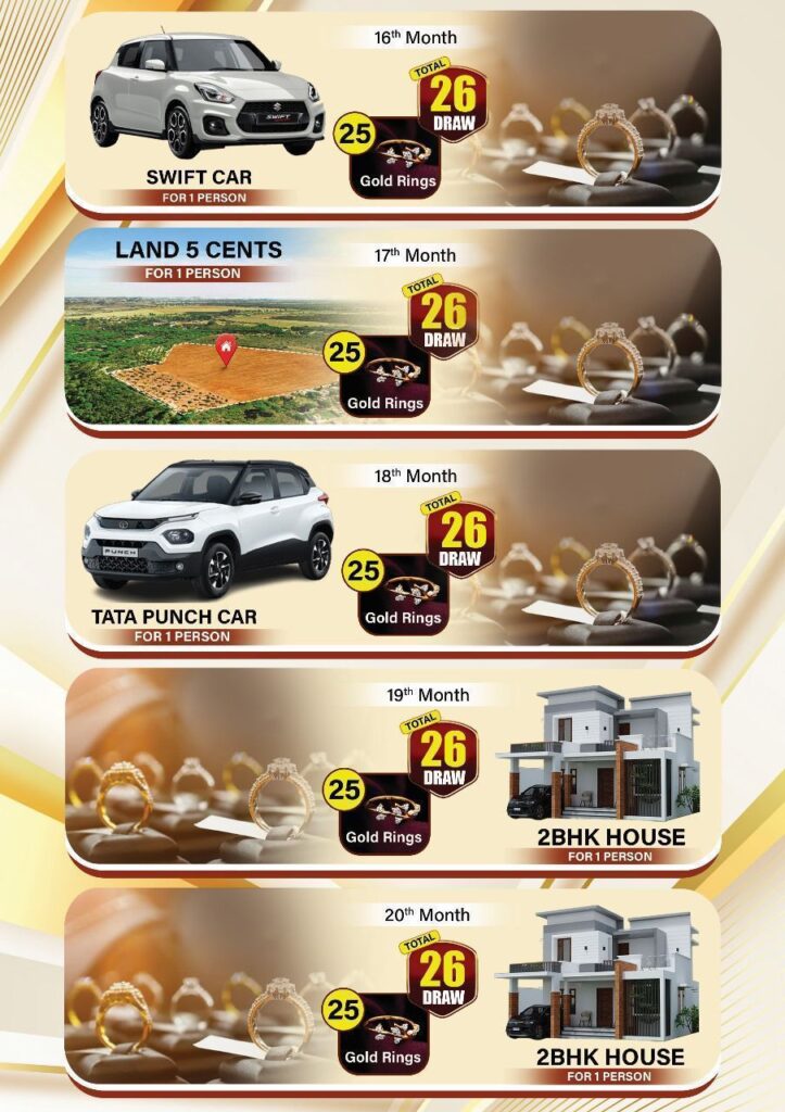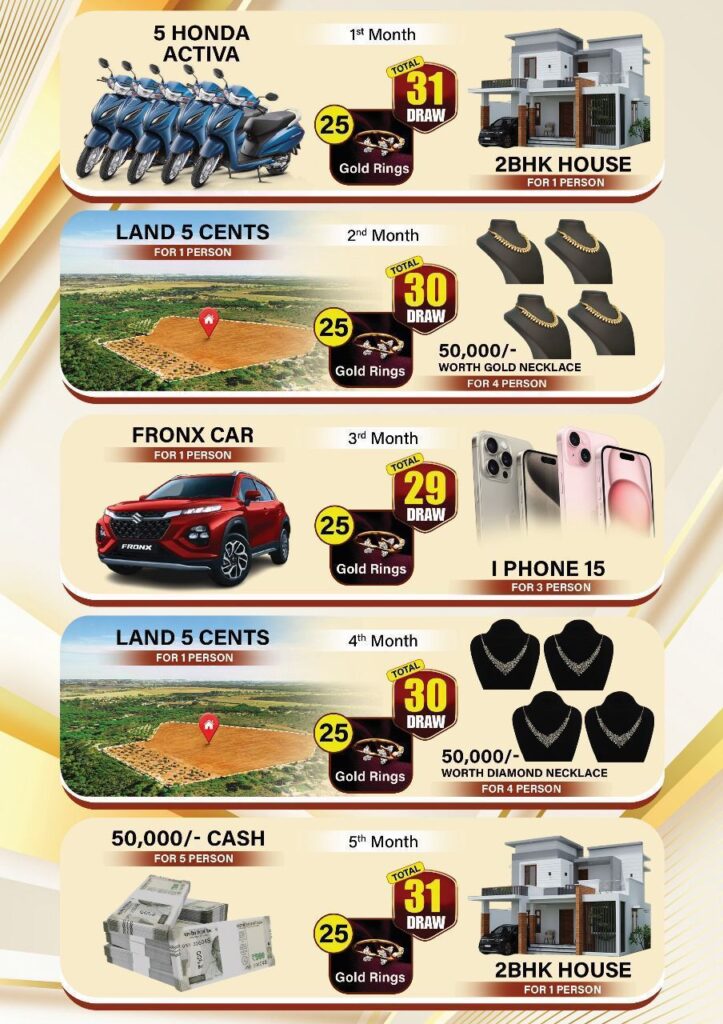ತಿಂಗಳಿಗೆ ಕಟ್ಟುವ 1000 ರೂಪಾಯಿಗಳಿಂದ 6 ಮನೆಗಳು, 4 ಐಶಾರಾಮಿ ಕಾರು, 4 ಸುಸಜ್ಜಿತ Land ಸೇರಿದಂತೆ, ಚಿನ್ನ, ಡೈಮಂಡ್, ಬೈಕ್,ಆಕ್ಟಿವಾ, ನಗದನ್ನು ನಿಮ್ಮದಾಗಿಸಿಕೊಳ್ಳಬಹುದು.