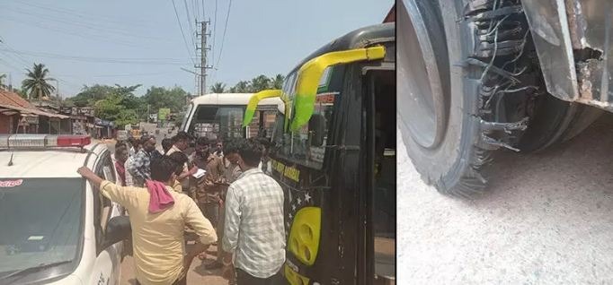 ಒಂದೇ ಟಯರಲ್ಲಿ ವಿಟ್ಲ-ಮುಡಿಪು-ಮಂಗಳೂರು ಮಧ್ಯೆ ಸಂಚರಿಸುವ ಖಾಸಗಿ ಬಸ್ಸೊಂದು ಹಿಂದಿನ ಎಡಬದಿ ಟಯರ್ನಲ್ಲಿ ಮಾತ್ರ ಸಂಚರಿಸುತ್ತಿತ್ತು. ಇನ್ನೊಂದು ಟಯರ್ ಒಡೆದು ಕರ್ಕಶ ಶಬ್ದ ಬರುತ್ತಿತ್ತು. ಬಸ್ನ ಚಾಲಕ, ಕಂಡಕ್ಟರ್ ಮುಂಜಾಗ್ರತೆ ವಹಿಸಿಲ್ಲ ಎಂದು ಸಾರ್ವಜನಿಕರ ಆಕ್ರೋಶ ವ್ಯಕ್ತವಾಗಿದೆ.