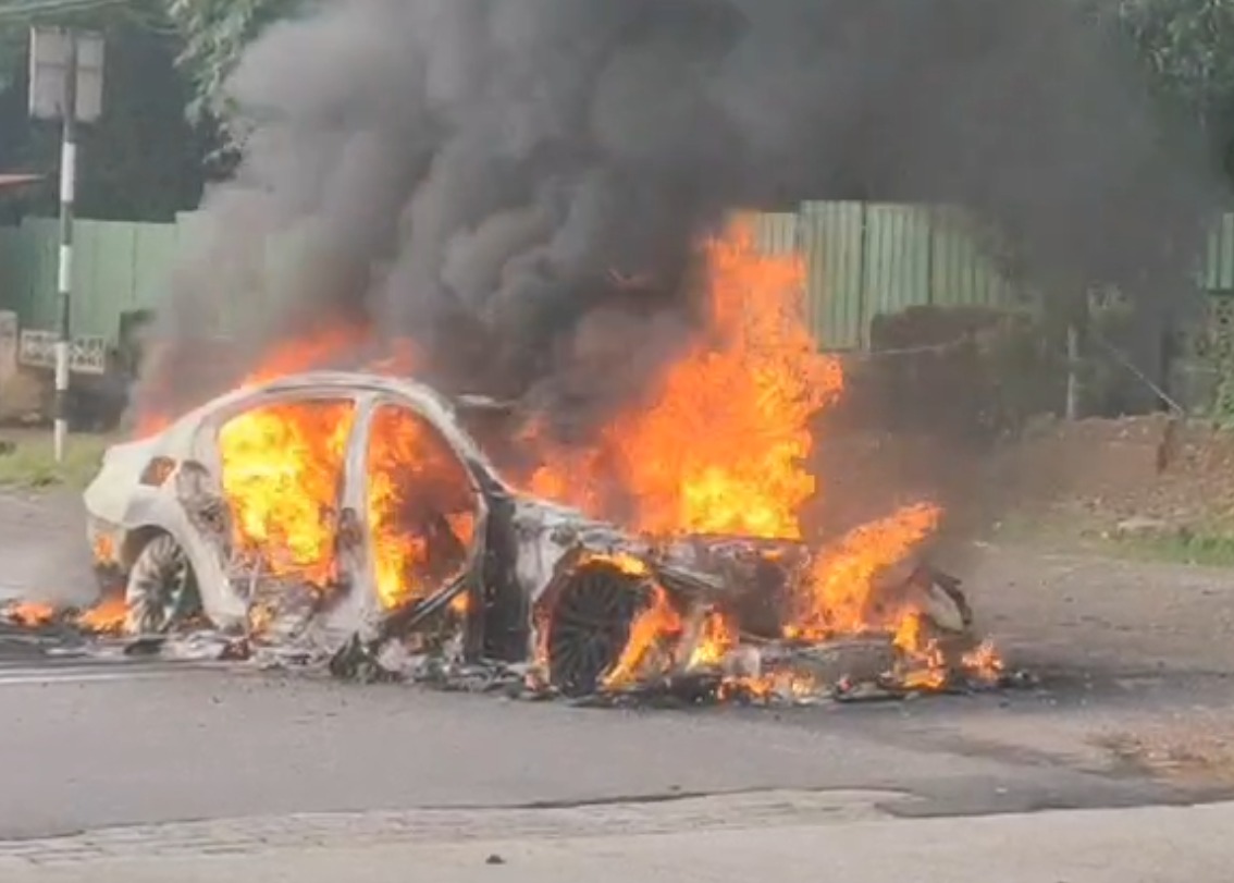 ಸುರತ್ಕಲ್ ಎನ್ ಐ.ಟಿ.ಕೆ ಸಮೀಪ ರಾಷ್ಟ್ರೀಯ ಹೆದ್ದಾರಿಯಲ್ಲಿ ಧಗಧಗನೆ ಹೊತ್ತಿ ಉರಿದ ಕಾರು