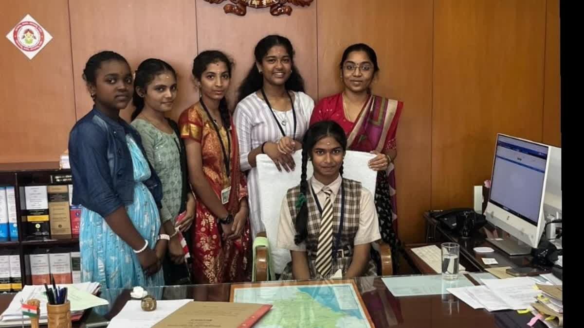 ಕಾರವಾರ: ಡಿಸಿ ಆಗಬೇಕೆಂಬ ಗುರಿ ಹೊಂದಿರುವ ವಿದ್ಯಾರ್ಥಿನಿಯನ್ನು ಉತ್ತರ ಕನ್ನಡ ಜಿಲ್ಲಾಧಿಕಾರಿ ಕೆ. ಲಕ್ಷ್ಮಿಪ್ರಿಯಾ ಅವರು ತಮ್ಮ ಕುರ್ಚಿ ಮೇಲೆ ಕೂರಿಸಿದ ಅಪರೂಪದ ಗಳಿಗೆಗೆ ಜಿಲ್ಲಾಧಿಕಾರಿ ಕಚೇರಿ ಸಾಕ್ಷಿಯಾಯಿತು. ಈ ಮೂಲಕ ಐಎಎಸ್ ಕನಸು ಕಂಡಿರುವ ವಿದ್ಯಾರ್ಥಿನಿಗೆ ಉತ್ತರ ಕನ್ನಡ ಡಿಸಿ ಸ್ಫೂರ್ತಿ ತುಂಬಿದ್ದಾರೆ.