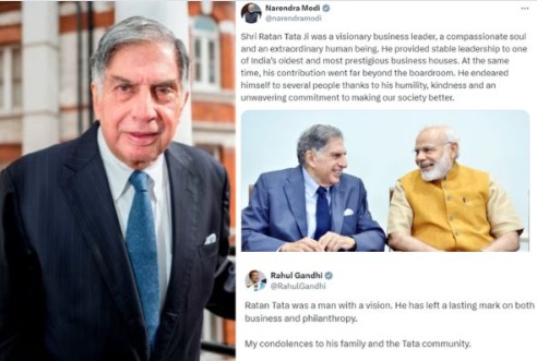 ಭಾರತ ಕಂಡ ಶ್ರೇಷ್ಟ ಕೈಗಾರಿಕೋದ್ಯಮಿ, ಕಲಿಯುಗದ ಕರ್ಣ ಅಂತಾನೇ ಕರೆಸಿಕೊಳ್ಳುತ್ತಿದ್ದ ಟಾಟಾ ಸನ್ಸ್ನ ಗೌರವ ಅಧ್ಯಕ್ಷ ರತನ್ ಟಾಟಾ ನಮ್ಮನ್ನಗಲಿರುವುದು ತೀವ್ರ ದುಃಖ ತಂದಿದೆ. ಅವರ ನಿಧನಕ್ಕೆ ಪ್ರಧಾನಿ ನರೇಂದ್ರ ಮೋದಿ, ರಾಷ್ಟ್ರಪತಿ ದ್ರೌಪದಿ ಮುರ್ಮು, ಸಲ್ಮಾನ್ ಖಾನ್, ಗೌತಮ್ ಅದಾನಿ, ಆನಂದ ಮಹೀಂದ್ರಾ, ಗೂಗಲ್ ಸಿಇಓ ಸುಂದರ್ ಪಿಚ್ಛೈ ಸೇರಿದಂತೆ ಹಲವು ಗಣ್ಯರು ಸಂತಾಪ ಸೂಚಿಸಿದ್ದಾರೆ. ಸಾಮಾಜಿಕ ಜಾಲತಾಣದಲ್ಲಿ ಪೋಸ್ಟ್ ಹಾಕಿರುವ ಪ್ರಧಾನಿ ಮೋದಿ, ‘ರತನ್ ಟಾಟಾ ದೂರದೃಷ್ಟಿಯ ಉದ್ಯಮಿ. ಸಹಾನುಭೂತಿಯುಳ್ಳ ಆತ್ಮ ಮತ್ತು ಅಸಾಧಾರಣ ಮನುಷ್ಯ. ಅವರು ಭಾರತದ ಅತ್ಯಂತ ಹಳೆಯ ಮತ್ತು ಅತ್ಯಂತ ಪ್ರತಿಷ್ಠಿತ ವ್ಯಾಪಾರ ಸಂಸ್ಥೆಗಳಿಗೆ ಸ್ಥಿರ ನಾಯಕತ್ವ ನೀಡಿದರು’ ಎಂದು ಸ್ಮರಿಸಿದ್ದಾರೆ. ಲೋಕಸಭಾ ವಿಪಕ್ಷ ನಾಯಕ ರಾಹುಲ್ ಗಾಂಧಿ, ‘ರತನ್ ಟಾಟಾ ದೂರದೃಷ್ಟಿ ಹೊಂದಿದ ವ್ಯಕ್ತಿ. ಅವರು ವ್ಯಾಪಾರ ಮತ್ತು ಲೋಕೋಪಕಾರ ಎರಡರಲ್ಲೂ ಶಾಶ್ವತವಾದ ಗುರುತು ಬಿಟ್ಟಿದ್ದಾರೆ. ಅವರ ಕುಟುಂಬ ಮತ್ತು ಟಾಟಾ ಸಮುದಾಯಕ್ಕೆ ನನ್ನ ಸಂತಾಪಗಳು’ ಎಂದು ತಿಳಿಸಿದ್ದಾರೆ.