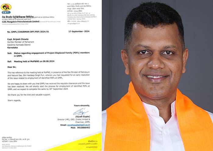 ಈ ಮೂಲಕ ಬಹುದಿನಗಳ ಜೆಬಿಎಫ್ ಪಿಡಿಎಫ್ ಉದ್ಯೋಗಸ್ಥರ ಗಂಭೀರ ಸಮಸ್ಯೆಯನ್ನು ದ.ಕ. ಸಂಸದ ಬ್ರಿಜೇಶ್ ಚೌಟ ಬಗೆಹರಿಸುವಲ್ಲಿ ಯಶಸ್ವಿಯಾಗಿದ್ದಾರೆ. ಈ ಸಮಸ್ಯೆಗೆ ತುರ್ತಾಗಿ ಸ್ಪಂದಿಸುವಂತೆ ಕಳೆದ ತಿಂಗಳು ಪೆಟ್ರೋಲಿಯಂ ಸಚಿವ ಹರ್ದೀಪ್ ಸಿಂಗ್ ಪುರಿ ಅವರನ್ನು ಭೇಟಿ ಮಾಡಿ ಬ್ರಿಜೇಶ್ ಚೌಟ ಮನವಿ ಮಾಡಿದ್ದರು. ಈ ಮನವಿಯ ಮೇರೆಗೆ ಅವರು, ಪೆಟ್ರೋಲಿಯಂ ಸಚಿವಾಲಯ ಕಾರ್ಯದರ್ಶಿ ಪಂಕಜ್ ಜೈನ್, ಗೈಲ್ ಸಿಎಂಡಿ ಸಂದೀಪ್ ಗುಪ್ತಾ ಹಾಗೂ ಜಿಎಂಪಿಎಲ್ ಅಧ್ಯಕ್ಷ ಆಯುಷ್ ಗುಪ್ತಾರೊಂದಿಗೆ ಸಭೆ ನಡೆಸಿದ್ದರು. ಇದೀಗ ಬಗ್ಗೆ ಬ್ರಿಜೇಶ್ ಚೌಟ ಅವರಿಗೆ ಪತ್ರ ಬರೆದಿರುವ ಗೇಲ್ ಇಂಡಿಯಾದ ನಿರ್ದೇಶಕ ಹಾಗೂ ಜಿಎಂಪಿಎಲ್ ಅಧ್ಯಕ್ಷ ಆಯುಷ್ ಗುಪ್ತಾ “ಜಿಎಂಪಿಎಲ್ಗೆ ಜೆಬಿಎಫ್ಪಿಎಲ್ ಪಿಡಿಎಫ್ ಸಮಸ್ಯೆ ಬಗ್ಗೆ ಮನವಿ ಬಂದಿದ್ದು ಅದನ್ನು ಆದ್ಯತೆ ಮೇರೆಗೆ ಬಗೆಹರಿಸಲಾಗುತ್ತಿದ್ದು, ಸೆ.30ರೊಳಗೆ ಈ ಪ್ರಕ್ರಿಯೆ ಪೂರ್ಣಗೊಳಿಸುವುದಾಗಿ” ಭರವಸೆ ನೀಡಿದ್ದಾರೆ. ಈ ಹಿನ್ನಲೆಯಲ್ಲಿ ಮತ್ತೆ ಉದ್ಯೋಗ ಕಲ್ಪಿಸಿ ಕೊಟ್ಟ ಸಂಸದ ಬ್ರಿಜೇಶ್ ಚೌಟರನ್ನು ಸಂತ್ರಸ್ತರು ಭೇಟಿ ಮಾಡಿ ಅಭಿನಂದನೆ ಸಲ್ಲಿಸಿದ್ದಾರೆ.