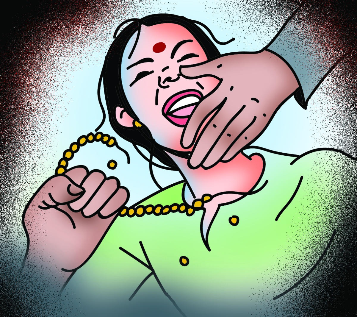 ಆ ಯುವಕ ಬೈಕ್ನಲ್ಲಿ ಅವರನ್ನು ಹಿಂಬಾಲಿಸಿ, ರಸ್ತೆಯ ಮೇಲಿದ್ದ ನೀರಿನ ಟ್ಯಾಂಕ್ ಬಳಿ ತಡೆದು, ಚಾಕು ತೋರಿಸಿ ಸರಕ್ಕಾಗಿ ಬೇಡಿಕೆ ಇಟ್ಟಿದ್ದಾನೆ. ಆತ್ಮರಕ್ಷಣೆಗಾಗಿ ನಳಿನಿಯವರು ತಮ್ಮ ಕೊಡೆಯಿಂದ ಆತನ ಕೈಗೆ ಹೊಡೆದಾಗ, ಆತ ಅವರನ್ನು ತಳ್ಳಿ, ಚಿನ್ನದ ಸರವನ್ನು ಕಸಿದು ವೇಗವಾಗಿ ಪರಾರಿಯಾಗಿದ್ದಾನೆ.