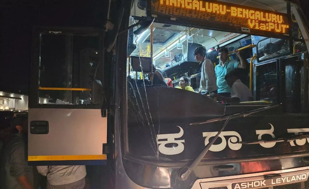 ಮಂಗಳೂರು: ಹೆಲ್ಮೆಟ್‌ನಲ್ಲಿ ಬಡಿದು ಕೆಎಸ್ಆರ್‌ಟಿಸಿ ಬಸ್ ಗಾಜು ಒಡೆದು ಸ್ಕೂಟರ್ ಸವಾರ ಪರಾರಿ..!