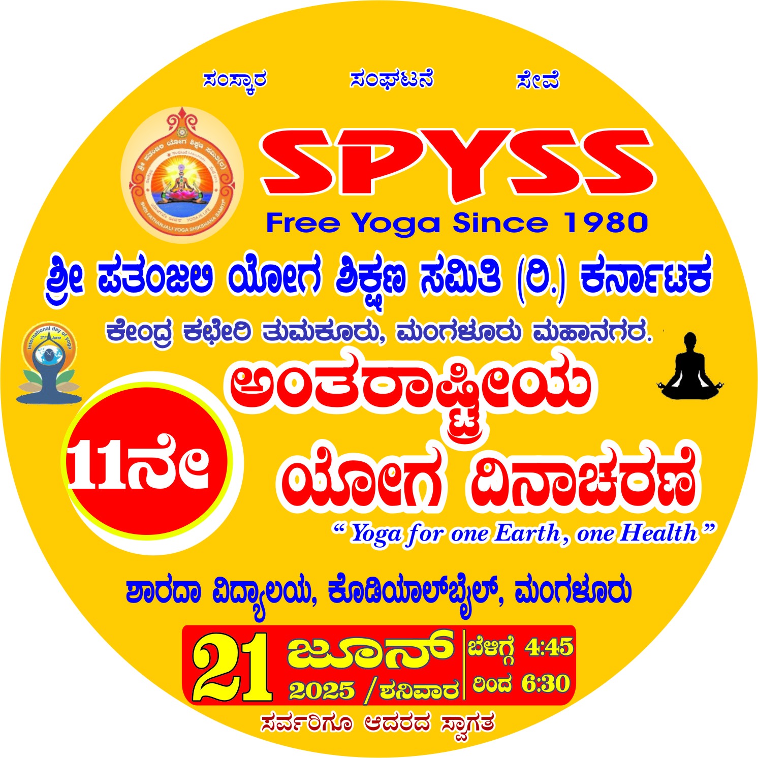 ಮಂಗಳೂರು: ಎಸ್ ಪಿ ವೈ ಎಸ್ ಎಸ್ ರಿಜಿಸ್ಟರ್ ಕರ್ನಾಟಕ, ತುಮಕೂರು ಕೇಂದ್ರ ಸಮಿತಿ ಮಂಗಳೂರು ಮಹಾನಗರ ಇವರು 11ನೇ ಅಂತರಾಷ್ಟ್ರೀಯ ಯೋಗ ದಿನಾಚರಣೆಯನ್ನು ಶಾರದಾ ವಿದ್ಯಾಲಯದಲ್ಲಿ ದಿನಾಂಕ 21 ಜೂನ್ 2025 ಶನಿವಾರದಂದು ಬೆಳಿಗ್ಗೆ 5.00 ರಿಂದ 6.30 ವರೆಗೆ ಸಾರ್ವಜನಿಕರ ಸೇರುವಿಕೆಯೊಂದಿಗೆ ಆಚರಿಸಲಾಗುವುದು ಎಂದು ಎಸ್ ಪಿ ವೈ ಎಸ್ ಎಸ್ ನ ಮಹಾನಗರ ಸಂಚಾಲಕರಾದ ಶ್ರೀಯುತ ಆನಂದ ಕುಂಟಿನಿ ರವರು ತಿಳಿಸಿರುತ್ತಾರೆ ಸಾರ್ವಜನಿಕರಿಗೆ ಮುಕ್ತ ಅವಕಾಶವನ್ನು ನೀಡಿದ್ದಾರೆ.