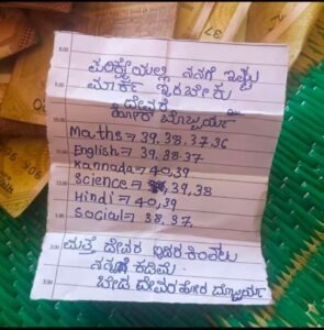 ಪರೀಕ್ಷೆ ಅಂದ್ರೆ ಭಯ ಯಾರಿಗಿರಲ್ಲ ಹೇಳಿ. ಕಲಿಕೆಯಲ್ಲಿ ಮುಂದಿರುವ ವಿದ್ಯಾರ್ಥಿಗಳಿಗೆ ಉತ್ತಮ ಅಂಕ ಬರಬೇಕು ಎನ್ನುವ ಆಸೆ ಇದ್ದರೆ ಸೋಂಬೇರಿ ವಿದ್ಯಾರ್ಥಿಗಳಿಗೆ ಜಸ್ಟ್ ಪಾಸ್ ಆದ್ರೆ ಸಾಕು ಎಂಬ ಯೋಚನೆ ಇರುತ್ತೆ. ಆ ರೀತಿ ಯೋಚಿಸಿದ ವಿದ್ಯಾರ್ಥಿಯೋರ್ವ ದೈವದ ಹುಂಡಿಯಲ್ಲಿ ಚೀಟಿ ಬರೆದು ಅಂಕಗಳ ಆಯ್ಕೆ ಕೊಟ್ಟು ಇಷ್ಟು ಕೊಡಿಸು ಸಾಕು ಅಂತ ಬೇಡಿಕೊಂಡಿದ್ದಾನೆ.