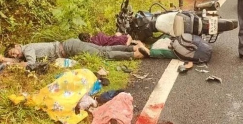 ಉಡುಪಿ: ಮಿನಿ ಲಾರಿ ಹಾಗೂ ದ್ವಿಚಕ್ರ ವಾಹನ ಮಧ್ಯೆ ಭೀಕರ ಅಪಘಾತ ನಡೆದ ಪರಿಣಾಮ ಒಂದೇ ಕುಟುಂಬದ ನಾಲ್ವರು ಸ್ಥಳದಲ್ಲೇ ಮೃತಪಟ್ಟ ದಾರುಣ ಘಟನೆ ಕಾರ್ಕಳ- ಧರ್ಮಸ್ಥಳ- ಸುಬ್ರಹ್ಮಣ್ಯ ಹೆದ್ದಾರಿಯ ಹೊಸ್ಮಾರು ಪಾಜೆಗುಡ್ಡೆ ಬಳಿ ಸೋಮವಾರ ಮಧ್ಯಾಹ್ನ ಸಂಭವಿಸಿದೆ.ಬೈಕ್ ನಲ್ಲಿ ಪತಿ, ಪತ್ನಿ ಮತ್ತು ಮೂವರು ಮಕ್ಕಳು ಪ್ರಯಾಣಿಸುತ್ತಿದ್ದು, ಅಪಘಾತದ ರಭಸಕ್ಕೆ ನಾಲ್ವರು ಮೃತಪಟ್ಟಿದ್ದಾರೆ.