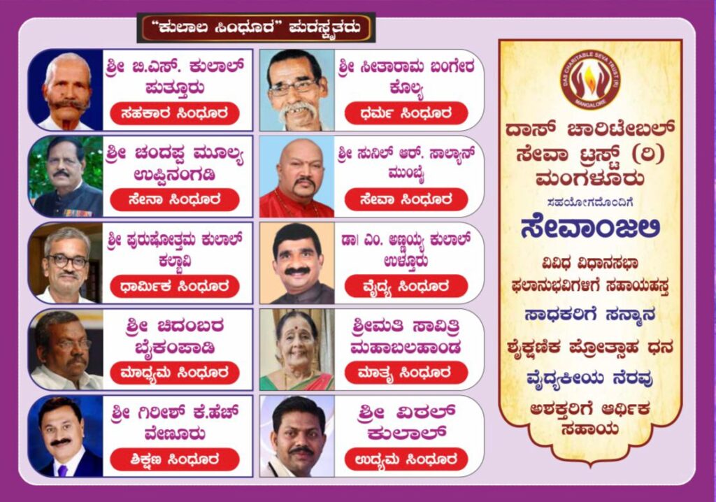 ಈ ಸಂದರ್ಭದಲ್ಲಿ ದಾಸ್ ಚಾರಿಟೇಬಲ್ ಸೇವಾ ಟ್ರಸ್ಟ್ (ರಿ) ಮಂಗಳೂರು ಸಹಯೋಗದೊಂದಿಗೆ ಸೇವಾಂಜಲಿ ,ವಿವಿಧ ವಿಧಾನಸಭಾ ಫಲಾನುಭವಿಗಳಿಗೆ ಸಹಾಯಹಸ್ತ, ಸಾಧಕರಿಗೆ ಸನ್ಮಾನ, ಶೈಕ್ಷಣಿಕ ಪ್ರೋತ್ಸಾಹ ಧನ , ವೈದ್ಯಕೀಯ ನೆರವು, ಅಶಕ್ತರಿಗೆ ಆರ್ಥಿಕ ನೆರವು ಹಸ್ತಾಂತರ ಕಾರ್ಯಕ್ರಮ ನಡೆಯಲಿದೆ.ಅವಿಭಜಿತ ಜಿಲ್ಲೆಯ ಕುಲಾಲ ಸಂಘಗಳ/ ಯುವವೇದಿಕೆಗಳ ಸಾಂಸ್ಕತಿಕ ಸ್ಪರ್ಧಾ ಕಾರ್ಯಕ್ರಮ ನಡೆಯಲಿದ್ದು, ಆಳ್ವಾಸ್ ಶಿಕ್ಷಣ ಪ್ರತಿಷ್ಠಾನದ ಅಧ್ಯಕ್ಷರಾದ ಡಾ| ಎಂ. ಮೋಹನ ಆಳ್ವ ಚಾಲನೆ ನೀಡಲಿದ್ದಾರೆ. ವಿಜೇತ ತಂಡಗಳಿಗೆ ನಗದು ಬಹುಮಾನ ಸಿಗಲಿದೆ.