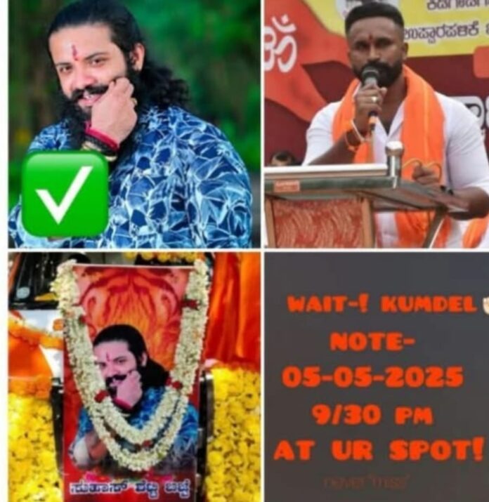ಮಂಗಳೂರು : ಸುಹಾಸ್ ಶೆಟ್ಟಿ ಹತ್ಯೆ ಮಾಡಿ ರೈಟ್ ಚಿಹ್ನೆ ಹಾಕಿ ಮತ್ತೊರ್ವ ಹಿಂದೂ ಮುಖಂಡ ಶರಣ್ ಪಂಪ್ ವೆಲ್ ಗೂ ಬೆದರಿಕೆ ಬಂದಿದೆ ಆದರೆ ಭರತ್ ಕುಂಮ್ಡೆಲ್ ರವರಿಗೆ 5-5-2025 9.30 ರ ಒಳಗೆ ನೀನು ಇದ್ದ ಸ್ಥಳದಲ್ಲೇ ಮುಗಿಸುತ್ತೆನೆಂದು ಸಾಮಾಜಿಕ ಜಾಲಾತಾಣದಲ್ಲಿ ದುಷ್ಕರ್ಮಿಗಳಿಂದ ಮತ್ತೊಂದು ಪೋಸ್ಟ್ ವೈರಲ್ ಮಾಡಿದ್ದಾರೆ.