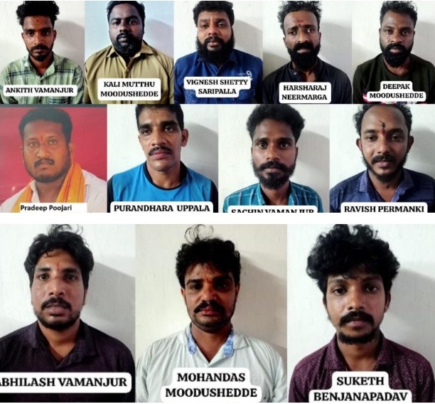 ಕ್ಯಾಮರಮ್ಯಾನ್ ಶರಣ್ ರಾಜ್, ರಾಮಸೇನೆ ಸ್ಥಾಪಕ ಪ್ರಸಾದ್ ಅತ್ತಾವರ್, ರಾಮಸೇನೆಯ ಕಾರ್ಯಕರ್ತರಾದ ಫರಂಗಿಪೇಟೆಯ ಹರ್ಷರಾಜ್, ವಾಮಂಜೂರಿನ ಮೋಹನ್ದಾಸ್, ಕಾಸರಗೋಡಿನ ಪುರಂದರ, ವಾಮಂಜೂರಿನ ಸಚಿನ್, ರವೀಶ್, ಅಂಕಿತ್, ಬೆಂಜನಪದವಿನ ಸುಕೇತ್, ಮೂಡುಶೆಡ್ಡೆಯ ಕಾಳಿಮುತ್ತು, ಬೊಂಡಂತಿಲದ ಅಭಿಲಾಷ್, ವಾಮಂಜೂರಿನ ದೀಪಕ್, ನೀರುಮಾರ್ಗದ ವಿಘ್ನೇಶ್, ವಾಮಂಜೂರಿನ ಪ್ರದೀಪ್ ಪೂಜಾರಿ ಬಂಧಿತ ಆರೋಪಿಗಳು ಇಂದು ಬೆಳಗ್ಗೆ ಸುಮಾರು 11:50ಕ್ಕೆ, 11ಮಂದಿಯ ತಂಡ ಮಂಗಳೂರು ನಗರದ ಬರ್ಕೆ ಪೊಲೀಸ್ ಠಾಣೆ ವ್ಯಾಪ್ತಿಯ ಬಿಜೈ ಕೆಎಸ್ಆರ್ಟಿಸಿ ಬಳಿಯ ಆದಿತ್ಯ ಕಾಂಪ್ಲೆಕ್ಸ್ನಲ್ಲಿರುವ “ಕಲರ್ಸ್” ಎಂಬ ಯೂನಿಸೆಕ್ಸ್ ಸಲೂನ್ಗೆ ನುಗ್ಗಿ ದಾಂದಲೆ ನಡೆಸಿತ್ತು.