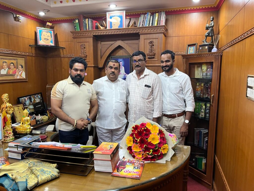 ಕರ್ನಾಟಕ ರಕ್ಷಣಾ ವೇದಿಕೆ ರಾಜ್ಯಾಧ್ಯಕ್ಷರಾದ ಟಿ. ಎ. ನಾರಾಯಣ ಗೌಡ ರವರನ್ನು ಇಂದು ರಾಜ್ಯ ಕೇಂದ್ರ ಕಚೇರಿಯಲ್ಲಿ ‘ಅವನಿ’ ಕಿರು ಚಿತ್ರತಂಡದ ವತಿಯಿಂದ ಶಾಲು ಹೊದಿಸಿ ಫಲ ಪುಷ್ಪ ನೀಡಿ 58 ನೇ ಹುಟ್ಟುಹಬ್ಬದ ಶುಭಾಶಯದೊಂದಿಗೆ ಸನ್ಮಾನಿಸಲಾಯಿತು.