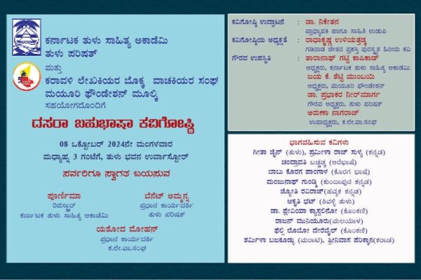 ಅ.8 : ತುಳು ಭವನದಲ್ಲಿ ದಸರಾ ಬಹುಭಾಷಾ ಕವಿಗೋಷ್ಠಿ