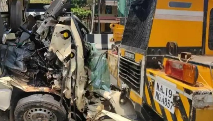 ಪಿಕಪ್ ವ್ಯಾನ್-ಕ್ರೇನ್ ನಡುವೆ ಅಪಘಾತ- ಪಿಕಪ್ ವ್ಯಾನ್ ಚಾಲಕ ಮೃತ್ಯು