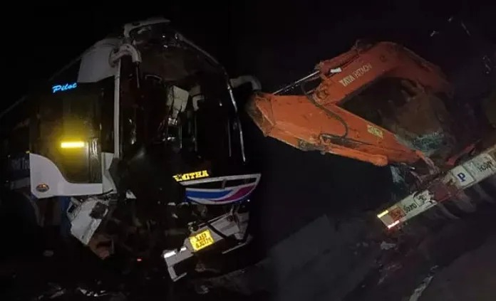 ನಿಲ್ಲಿಸಿದ್ದ ಹಿಟಾಚಿಗೆ ಖಾಸಗಿ ಬಸ್ ಢಿಕ್ಕಿ.! ಓರ್ವ ಮೃತ್ಯು, ಹಲವರಿಗೆ ಗಂಭೀರ ಗಾಯ