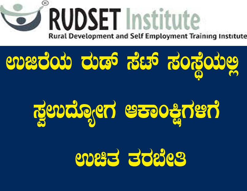 ಧರ್ಮಸ್ಥಳದ ಉಜಿರೆಯ ರುಡ್ ಸೆಟ್ ಸಂಸ್ಥೆಯಲ್ಲಿ ಸ್ವಉದ್ಯೋಗ ಆಕಾಂಕ್ಷಿಗಳಿಗೆ ಉಚಿತ ತರಬೇತಿ ನಡೆಯಲಿದೆ.
