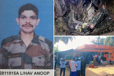 ಕುಂದಾಪುರ: ಸೇನಾ ಟ್ರಕ್ ರಸ್ತೆಯಿಂದ ಸ್ಕಿಡ್ ಆಗಿ ಕಂದಕಕ್ಕೆ ಬಿದ್ದ ಘಟನೆ ಪೂಂಚ್ ಜಿಲ್ಲೆಯ ಮೆಂಧರ್ ಪ್ರದೇಶದ ಬಲ್ನೋಯಿ ಪ್ರದೇಶದಲ್ಲಿ ನಡೆದಿದ್ದು ಈ ಟ್ರಕ್ನಲ್ಲಿ ಚಲಿಸುತ್ತಿದ್ದ ದೇಶ ಕಾಯುವ ಯೋಧರು ಪ್ರಯಾಣಿಸುತ್ತಿದ್ದು, ಇದರಲ್ಲಿ ಕರ್ನಾಟಕದ ಮೂವರು ಯೋಧ ಸೇರಿ ಐವರು ಮೃತ ಪಟ್ಟಿದ್ದಾರೆ. ಈ ಪೈಕಿ ಓರ್ವ ಯೋಧ ಕುಂದಾಪುರ ಬೀಜಾಡಿಯ ಅನೂಪ್ ಪೂಜಾರಿ (31) ಹುತಾತ್ಮ ಯೋಧ.