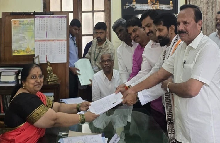 ಬೆಂಗಳೂರು: ಇಂದು ವಿಧಾನಪರಿಷತ್ ಚುನಾವಣೆ ಬಿಜೆಪಿ ಅಭ್ಯರ್ಥಿಗಳಾದ ಸಿ.ಟಿ.ರವಿ, ಎನ್.ರವಿಕುಮಾರ್ ಮತ್ತು ಎಂ.ಜಿ. ಮುಳೆ ಅವರು ವಿಧಾನಸೌಧದ 1ನೇ ಮಹಡಿ, ಕೊಠಡಿ ಸಂಖ್ಯೆ 121ರಲ್ಲಿ ನಾಮಪತ್ರ ಸಲ್ಲಿಸಿದರು.
