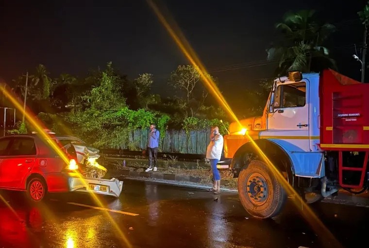 ಮಂಗಳೂರಿನಿಂದ ಬಿ ಸಿ ರೋಡ್ ಕಡೆಗೆ ಹೋಗುತ್ತಿದ್ದ ಕಾರಿಗೆ ಹಿಂಬದಿಯಿಂದ ಟಿಪ್ಪರ್ ಡಿಕ್ಕಿ ಹೊಡೆದಿದ್ದು ಅಪಘಾತದ ರಭಸಕ್ಕೆ ಕಾರಿನ ಹಿಂಭಾಗ ಸ೦ಪೂರ್ಣ ಜಖಂಗೊಂಡಿದೆ.ಕಾರಿನ ಸವಾರ ಯಾವುದೇ ಅಪಾಯವಿಲ್ಲದೆ ಪಾರಾಗಿದ್ದಾನೆ.
