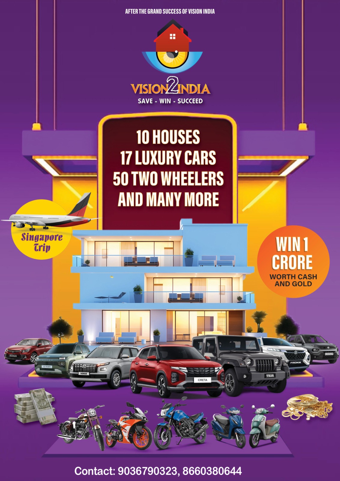 ಮಂಗಳೂರು: ಸ್ಕೀಮ್ ಹಾಗೂ ಸೇವಿಂಗ್ ಯೋಜನೆಯ ಇತಿಹಾಸದಲ್ಲೇ ಅತೀ ದೊಡ್ಡ ಬಹುಮಾನವನ್ನು ನೀಡುವ ಮಹತ್ತರ ಯೋಜನೆಗೆ ವಿಷನ್ 2 ಇಂಡಿಯಾ (ಸೀಸನ್ 2) ಚಾಲನೆ ನೀಡಿದೆ.